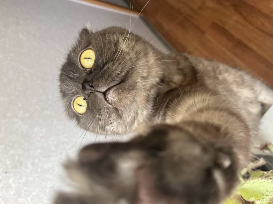 - "The scene depicts a Scottish Fold cat indoors in Chaikovsky, Russia, captured from a low-angle perspective" by FM-gQbQG2, licensed under CC BY 4.0