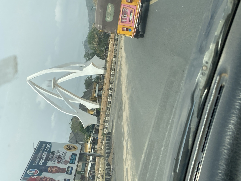 - "The image depicts a roadside scene at the Okene Peace Arch roundabout in Okene, Kogi State, Nigeria, viewed from the interior of a vehicle through its windshield" by FM-Ke8RH2, licensed under CC BY 4.0