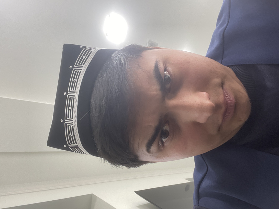 An indoor, close-up image, purportedly from Chinabad, Uzbekistan, displays a male individual from the chest up