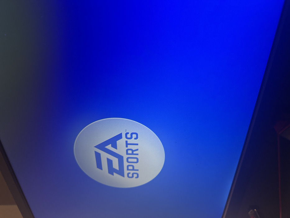 The image displays a close-up, oblique view of a digital screen exhibiting the EA SPORTS logo