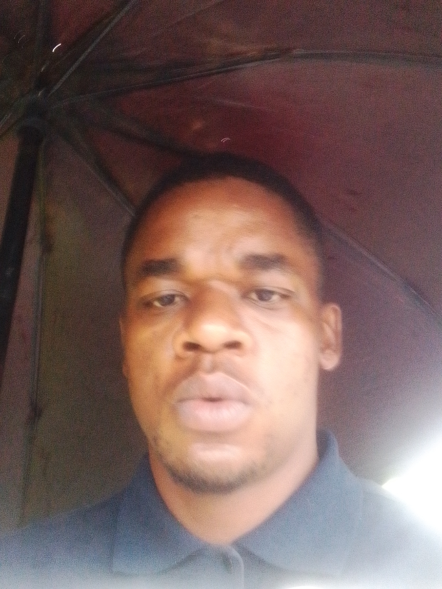 A close-up self-portrait shows a man with short, dark hair and facial stubble, wearing a dark collared shirt. The lighting is dim, and the background is obscured by what appears to be the interior of a dark-colored umbrella. The location is indicated as Unknown, Unknown.