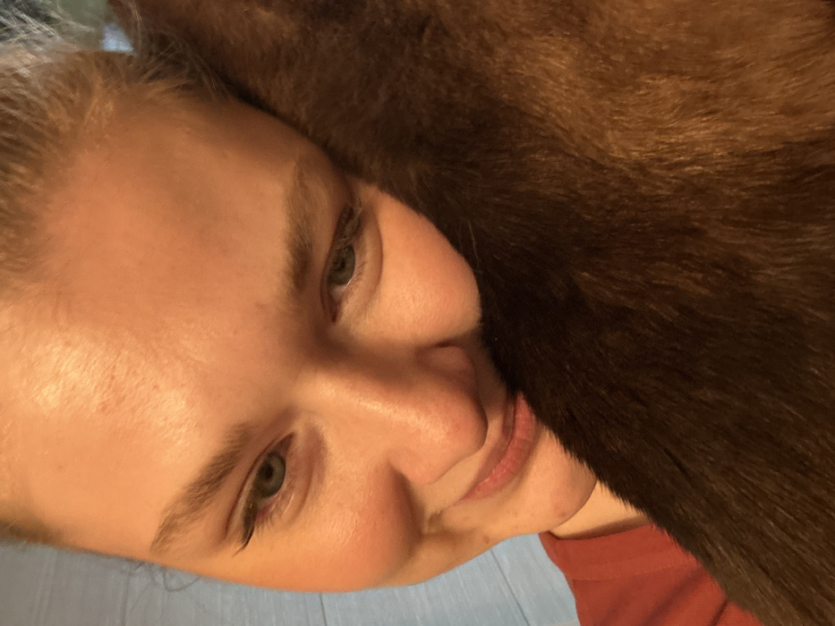 - "A person with fair skin and blond hair is nestled against brown fur" by FM-iSKVh2, licensed under CC BY 4.0