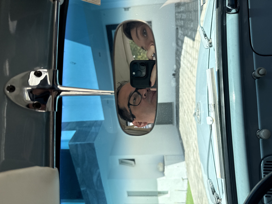 - "The image displays an interior view from a light blue vintage Volkswagen Beetle, looking forward" by FM-avfjN2, licensed under CC BY 4.0