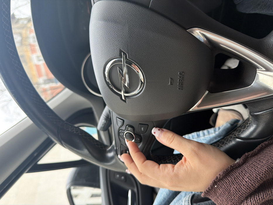 The image depicts the interior of an Opel vehicle from the driver's perspective