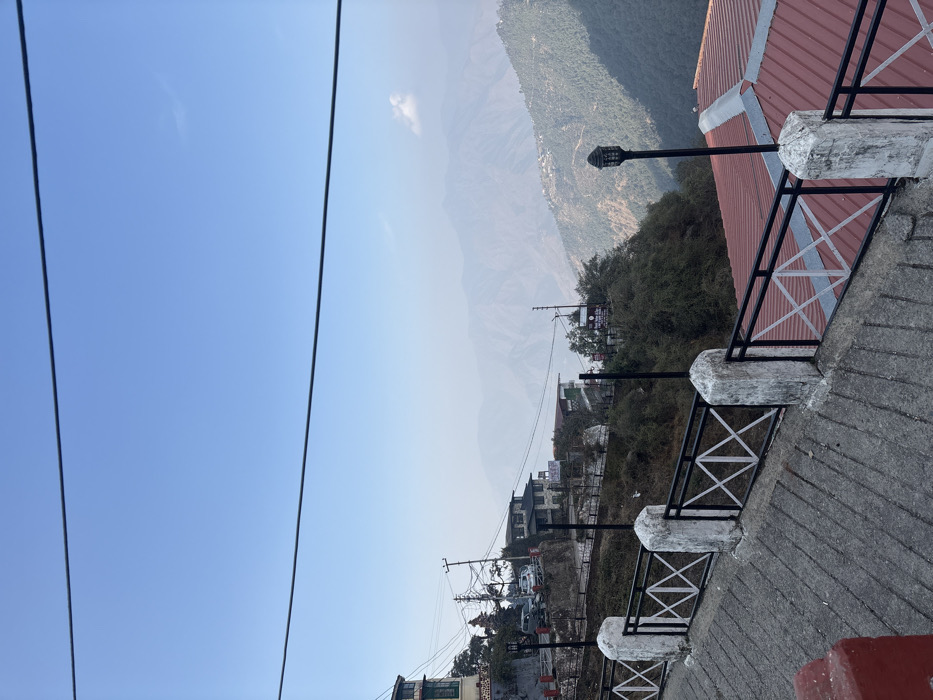 - "The image depicts a mountainous urban landscape in Mussoorie, India, viewed from an elevated position under a clear, bright blue sky with a faint wisp of cloud" by FM-LJoZ53, licensed under CC BY 4.0