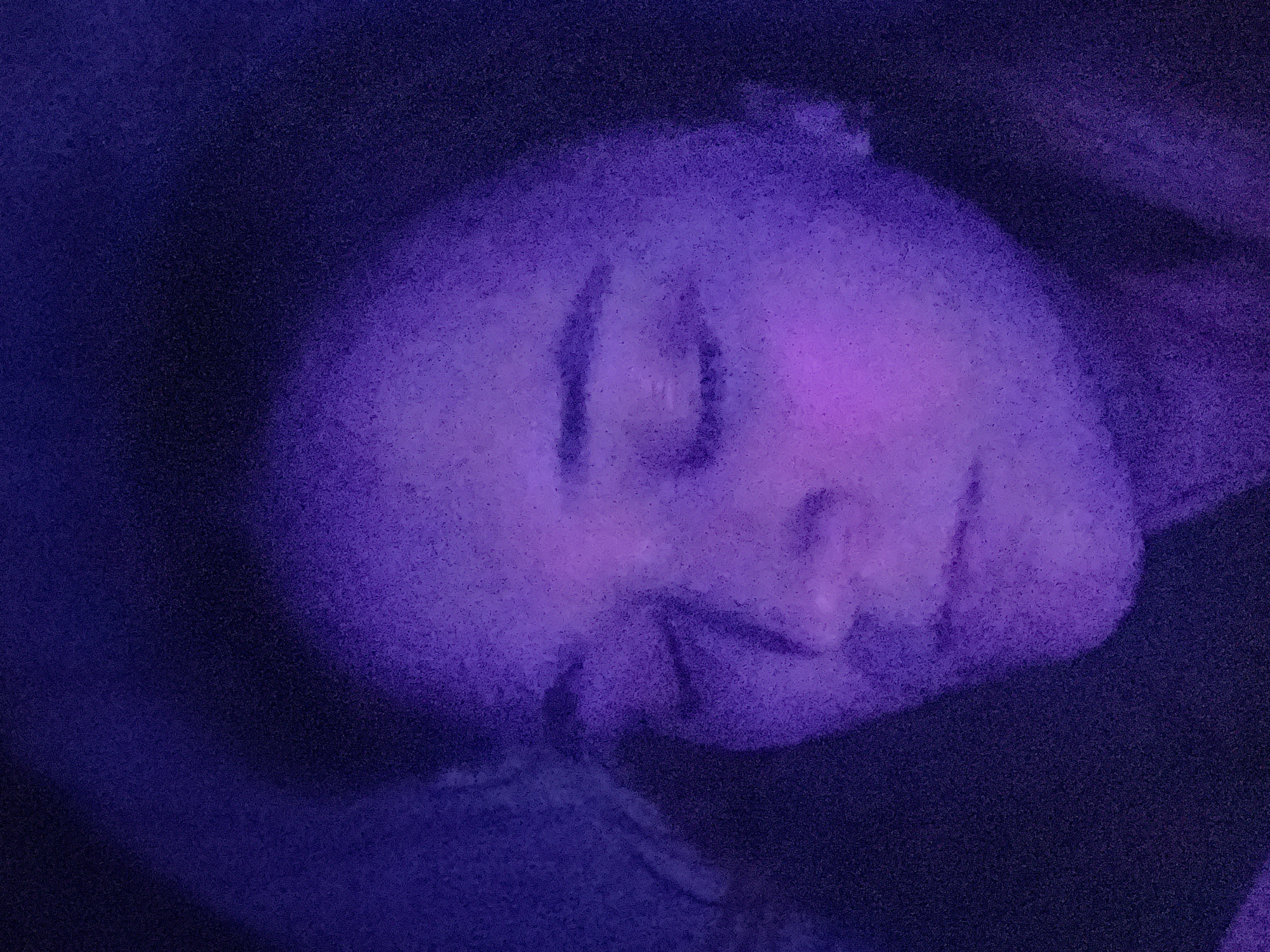 - "A close-up image depicts a single individual's face, illuminated by a pervasive purple light, suggesting low-light conditions or specific lighting" by FM-Jh9B72, licensed under CC BY 4.0