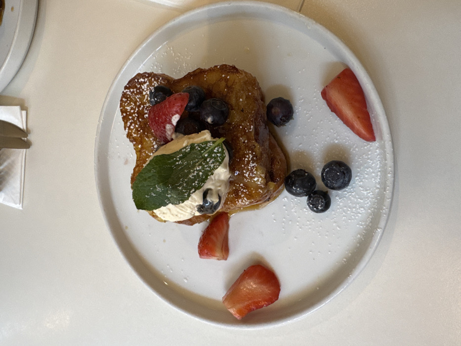 - "The image displays a single serving of French toast on a white, round plate, positioned on a light-colored, possibly white, tabletop" by FM-Gswv13, licensed under CC BY 4.0