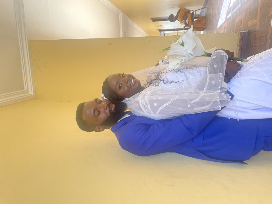 A forensic examination of the image reveals a staged portrait of a Black wedding couple in an indoor setting