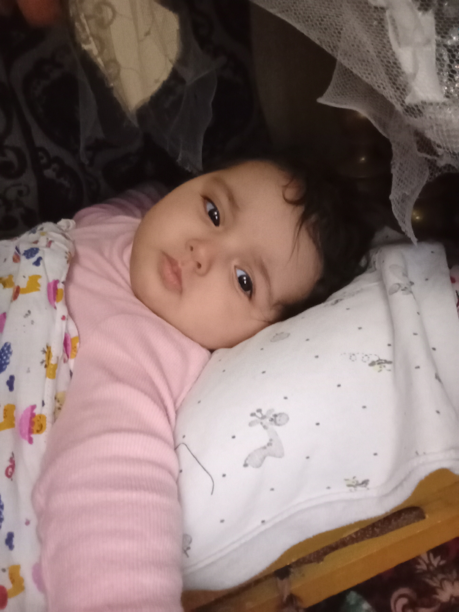 - "An infant is depicted lying down indoors in what appears to be a bed or crib, located in Galaosiyo, Uzbekistan" by FM-byLow1, licensed under CC BY 4.0