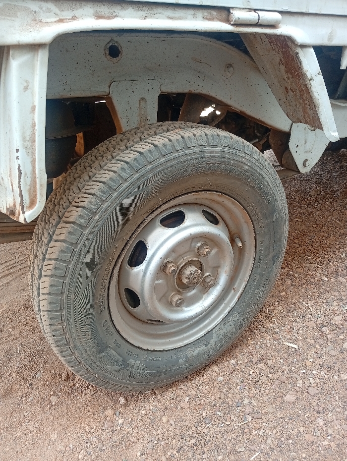 - "The image presents a close-up, angled view of a light-colored vehicle's rear-left wheel and adjacent undercarriage components, situated on unpaved ground in Jos, Nigeria" by FM-K9H6P2, licensed under CC BY 4.0