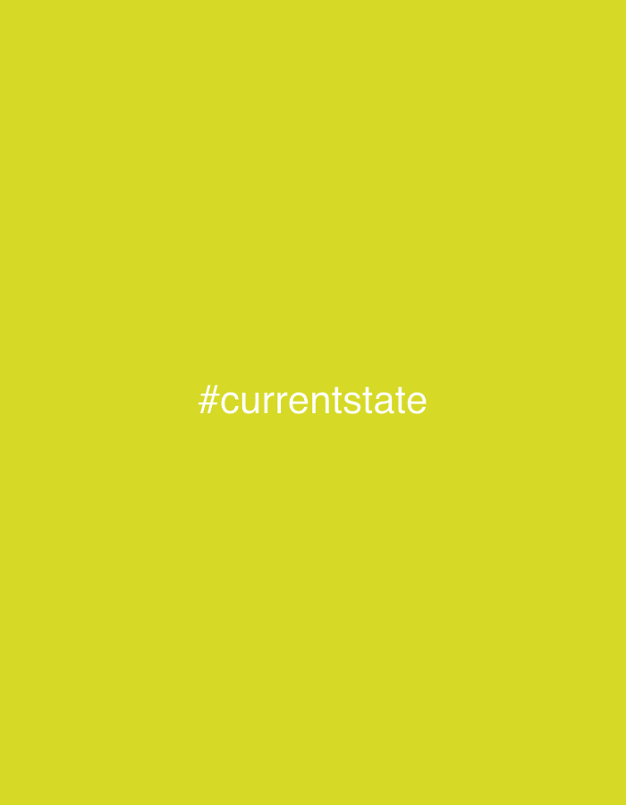 A yellow background fills the image. Centered horizontally and vertically is the white text "#currentstate". The text is written in a sans-serif font and appears to be crisp and clear. The yellow background is uniform in color, lacking any visible texture or gradients. Overall, the image is minimalist and text-focused.