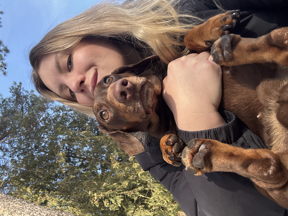 - "A female subject holds a brown dachshund in an outdoor setting in Zelenogradskiy, Russia" by FM-xqHZp2, licensed under CC BY 4.0