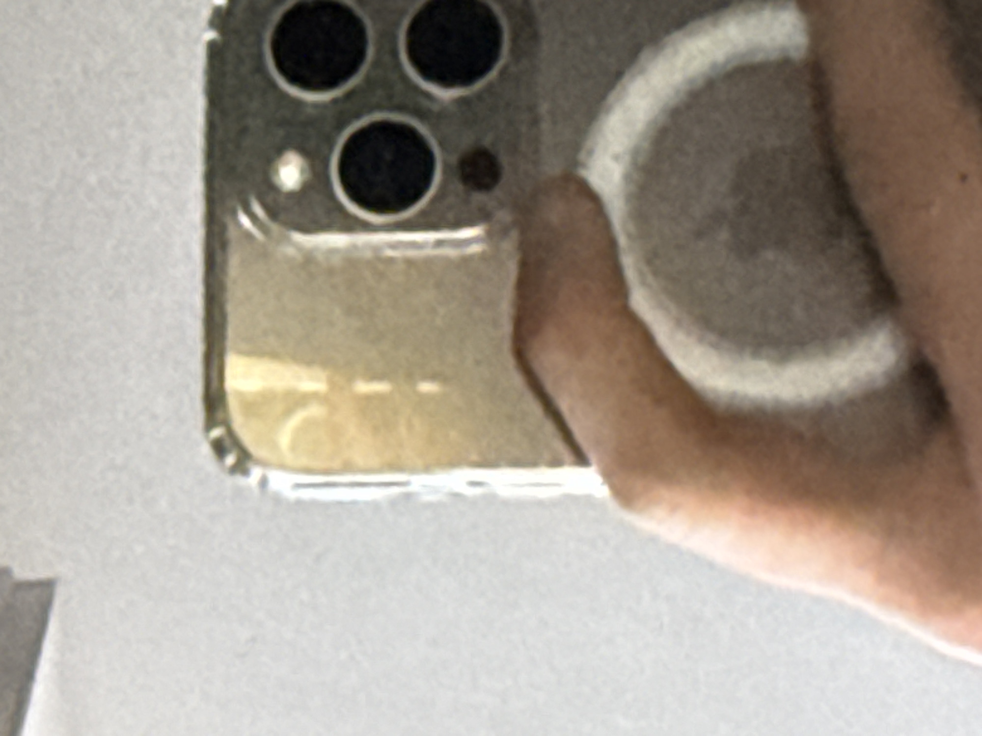 back of a gold iPhone in a clear case