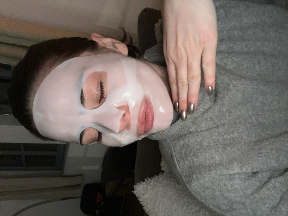 - "A woman with a white sheet mask on her face lies against a gray, fuzzy blanket" by FM-2aYl13, licensed under CC BY 4.0