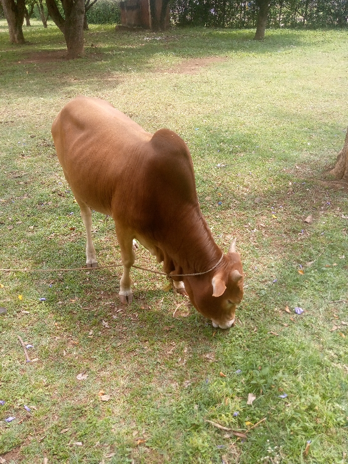 - "A single reddish-brown zebu cattle, exhibiting a prominent dorsal hump and small horns, is depicted grazing in a grassy outdoor environment in Kisumu, Kenya" by FM-izhk62, licensed under CC BY 4.0