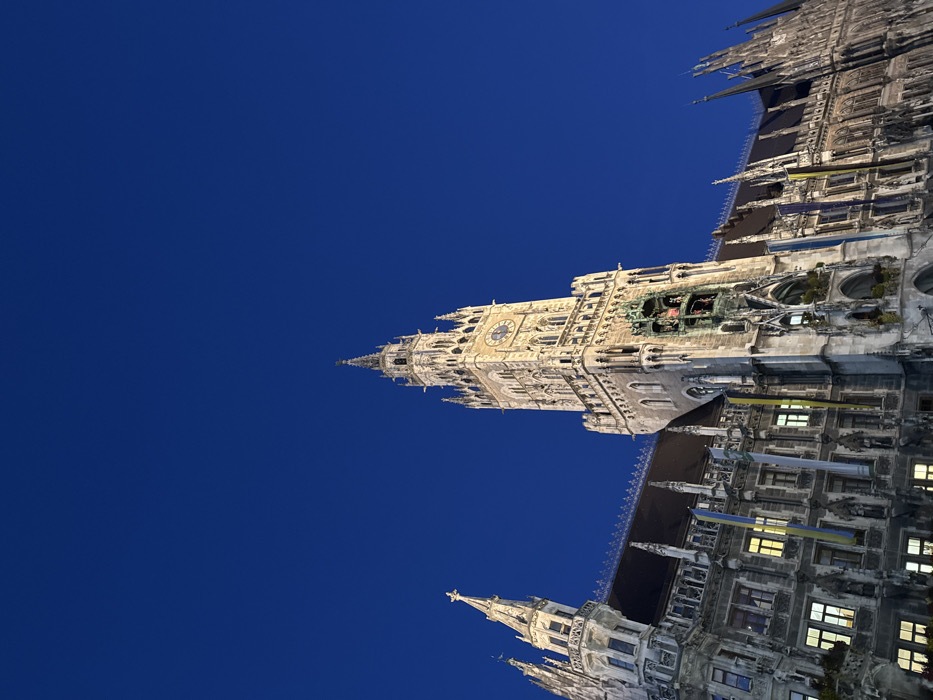 - "The image displays a low-angle view of the New Town Hall (Neues Rathaus) in Marienplatz, Munich, Germany, captured at dusk or night" by FM-jEBFN2, licensed under CC BY 4.0