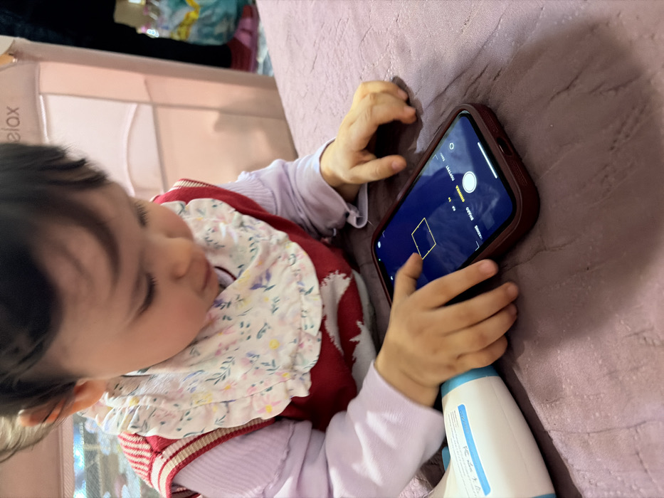 - "The scene, located in Brestovitsa, Bulgaria, depicts a young child, approximately one to two years old, positioned from the upper torso, looking downward with a focus on a smartphone" by FM-FEO493, licensed under CC BY 4.0