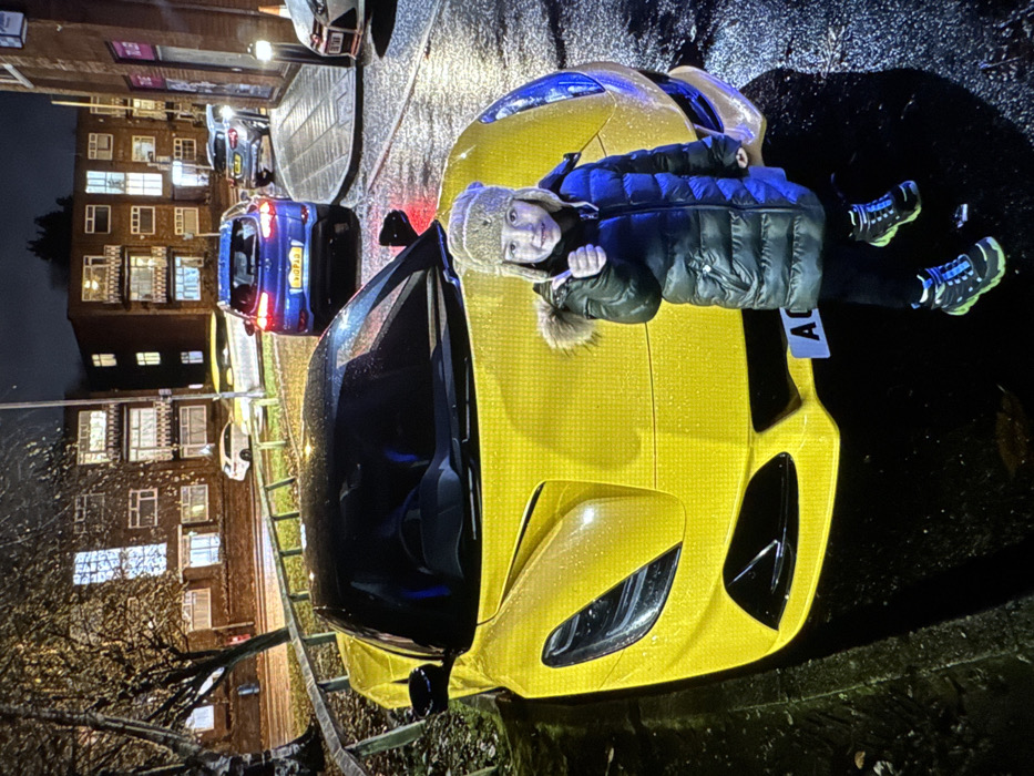 - "An urban night scene in Nikolaevo, Bulgaria, features a young child standing in front of a bright yellow sports car on a wet asphalt surface" by FM-m9os33, licensed under CC BY 4.0