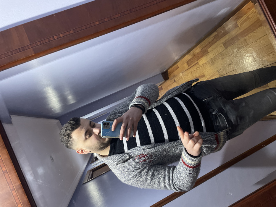 A young adult male is depicted in a mirror selfie taken indoors in Azpeitia, Spain