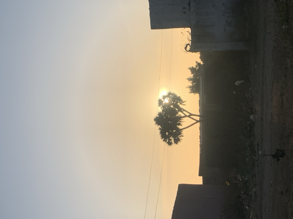 The image displays an outdoor scene in Dabawa, Nigeria, during either sunrise or sunset