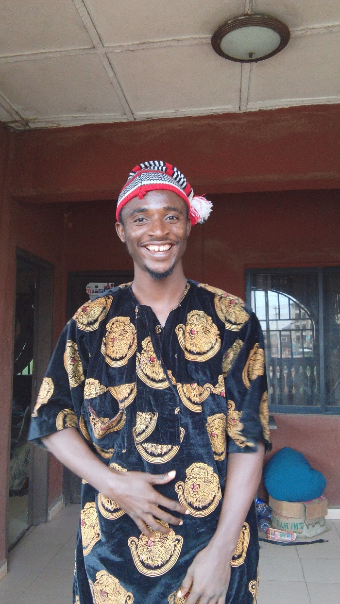 - "A single adult male, exhibiting dark skin and a broad smile, is captured in a medium shot within what appears to be a covered exterior or transitional space in Onitsha, Nigeria" by FM-Jqbih2, licensed under CC BY 4.0