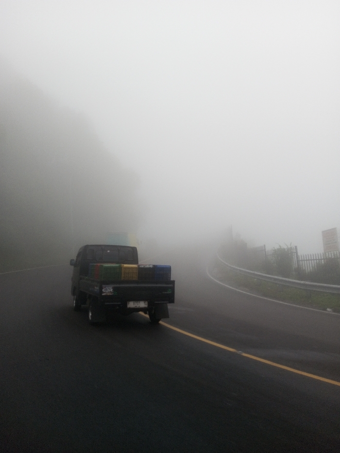 - "The image depicts a dark-colored pickup truck traveling on a wet asphalt road through dense fog in Siruppiddy, Sri Lanka" by FM-nDarU2, licensed under CC BY 4.0