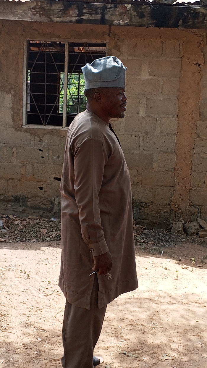 The image captures an adult male standing in profile outdoors in Egbedi, Nigeria, facing towards the right side of the frame