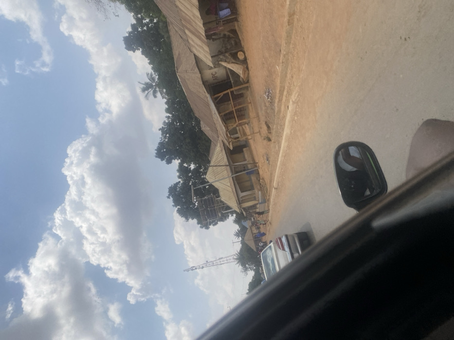 This image captures a daytime street scene in Andaha, Nigeria, from the perspective of a moving vehicle