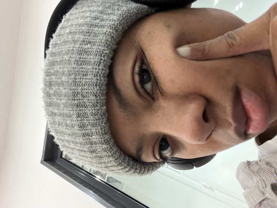 - "A person with tan skin, wearing a gray beanie and black headphones, is positioned off-kilter, facing the camera" by FM-54qXV2, licensed under CC BY 4.0