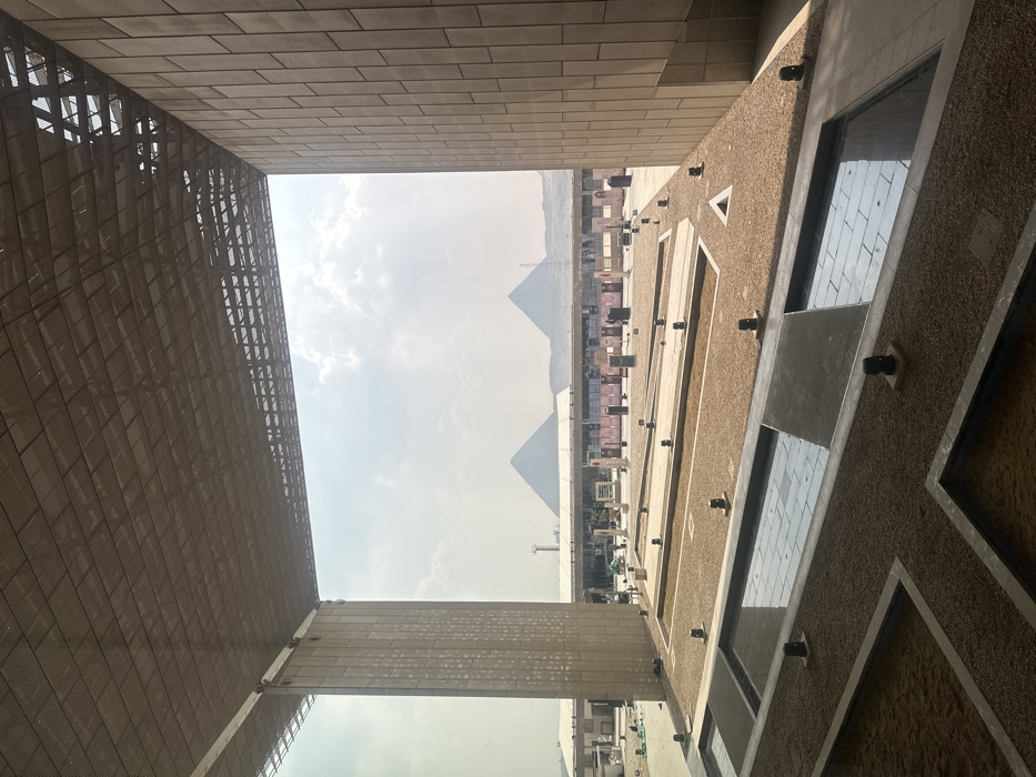 - "The image displays an exterior view captured from within the Grand Egyptian Museum, located in Kafrat Nassar, Egypt" by FM-jumSh1, licensed under CC BY 4.0