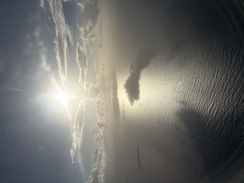- "An aerial image depicts an expansive body of water under a sky with scattered clouds and a bright sun, located in the city of Unknown, Greece" by FM-kvEG43, licensed under CC BY 4.0