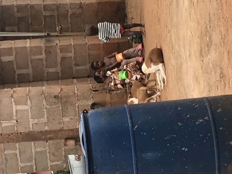 - "The image depicts an outdoor scene in Ogodo, Nigeria, characterized by unpaved reddish-brown earth and a background concrete block wall" by FM-eGIJq1, licensed under CC BY 4.0