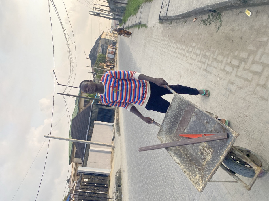 - "A man is pulling a metal wheelbarrow on a paved street" by FM-6XMFv1, licensed under CC BY 4.0