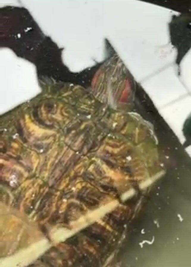 - "A top-down shot shows a red-eared slider turtle in a clear container filled with water" by FM-RjPGA3, licensed under CC BY 4.0