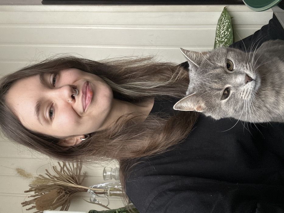 - "The image displays an adult individual and a domestic cat in an indoor setting, located in Dnipro, Ukraine" by FM-FmE2k1, licensed under CC BY 4.0
