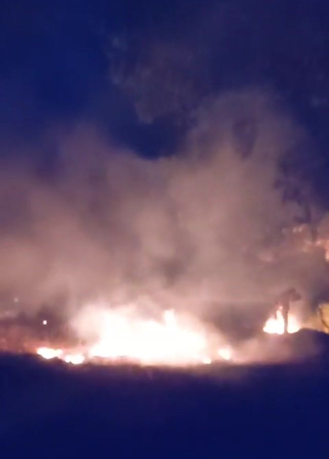 - "At night, a fire burns in a clearing or field" by FM-QrecA3, licensed under CC BY 4.0