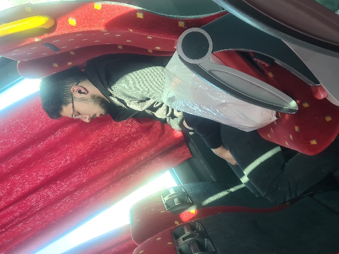 - "Inside a passenger vehicle, presumed to be a bus, in Al-Kiswa, Syria, a single male subject is depicted" by FM-9VsWL2, licensed under CC BY 4.0