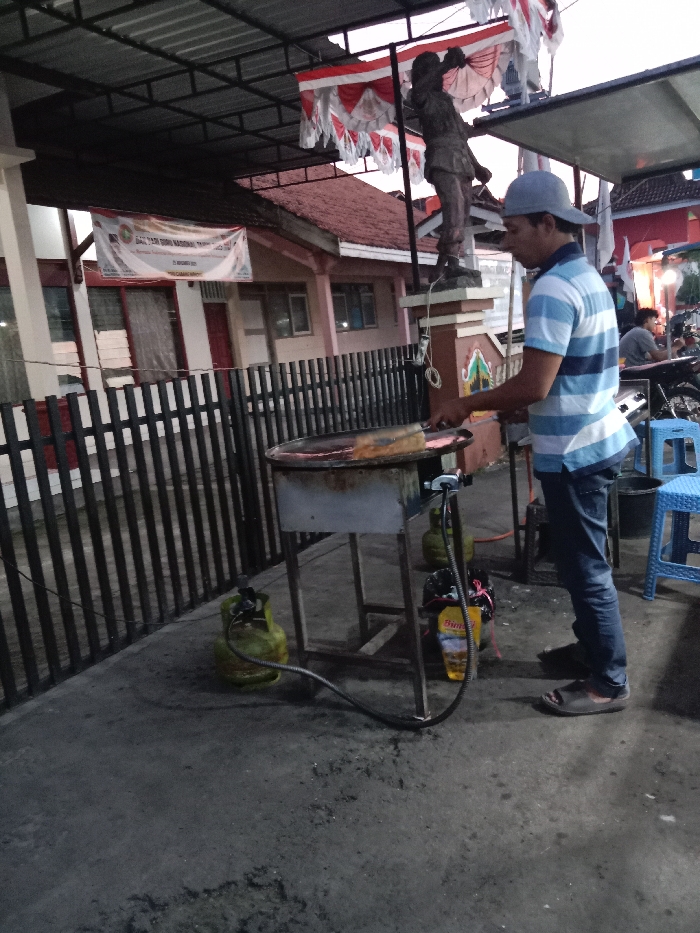 - "In Winong, Indonesia, a male street vendor is actively preparing food on a large, circular flat-top griddle at what appears to be dusk or evening" by FM-xHTx62, licensed under CC BY 4.0