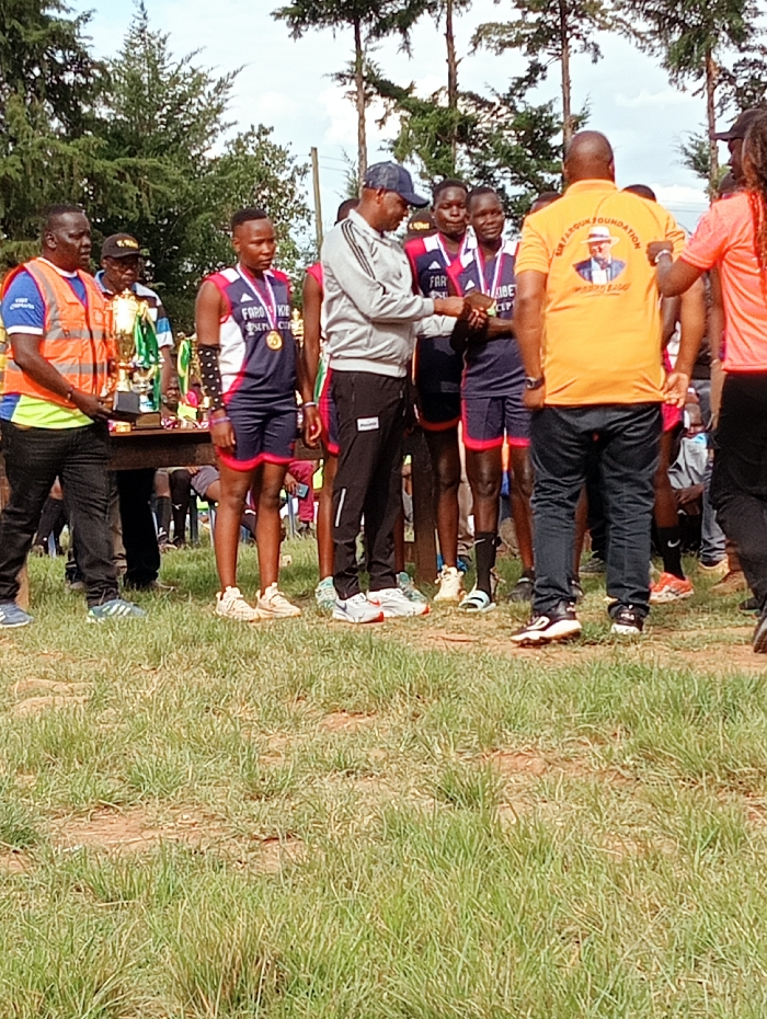 The image captures an outdoor awards ceremony in Ngenyilel ward, Kenya