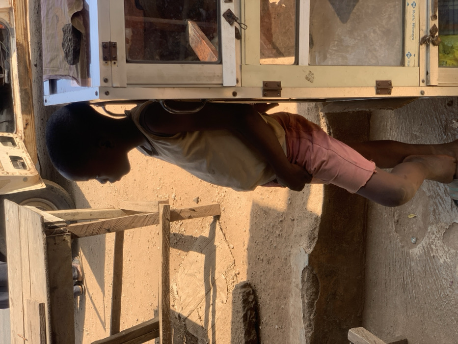 - "This outdoor scene, set in the city of Kabba, Nigeria, captures a young child standing in profile, facing left, with his back leaning against a display case" by FM-JIEGo1, licensed under CC BY 4.0