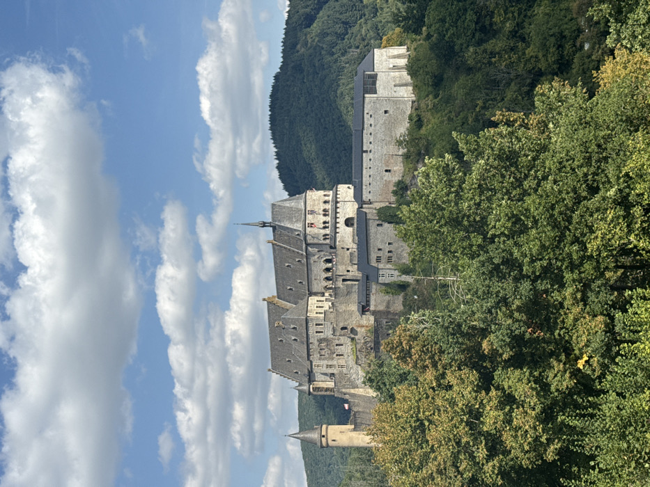 - "An elevated, wide-angle daylight photograph depicts Vianden Castle situated prominently on a densely wooded hill in Vianden, Luxembourg" by FM-euyLP2, licensed under CC BY 4.0