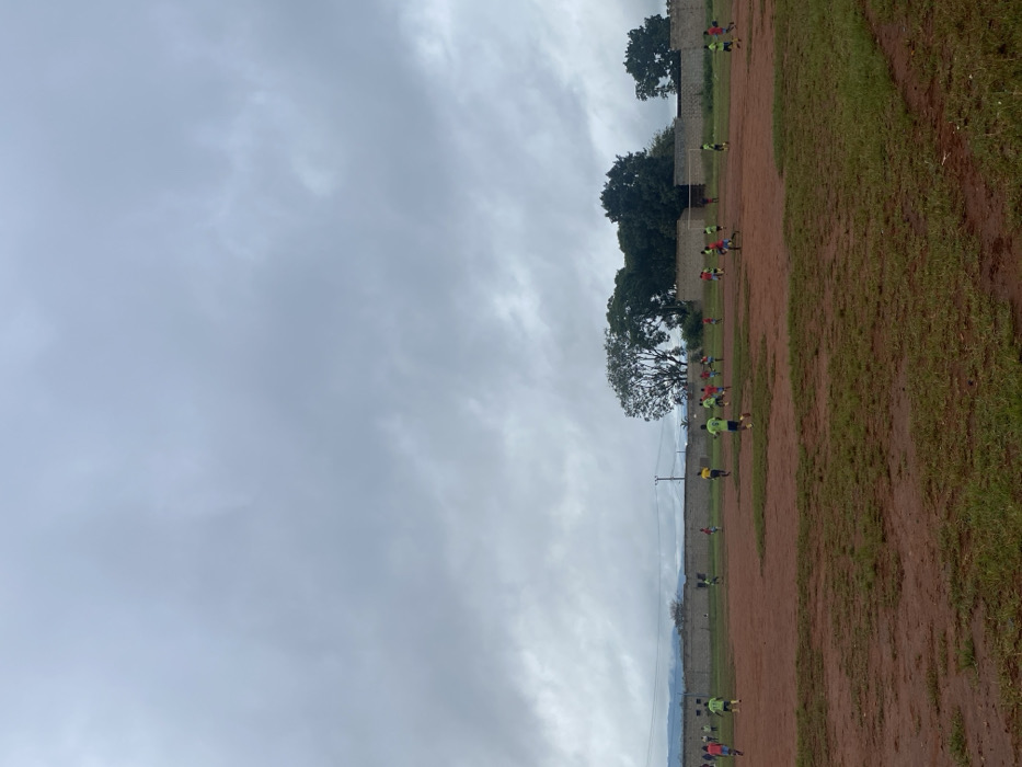 soccer game being played on a field in Mbinga, Tanzania (latitude: -10