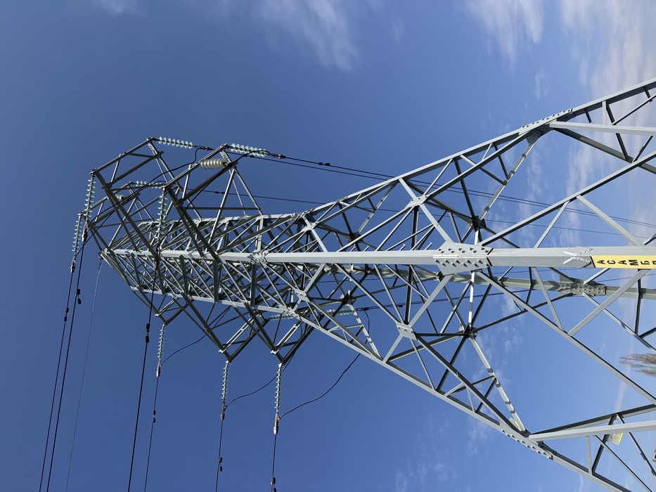 - "A galvanized steel lattice-style electrical transmission tower, or pylon, stands prominently against a clear blue sky with scattered white cirrus clouds, indicative of its location in German, Bulgaria" by FM-PZpw03, licensed under CC BY 4.0