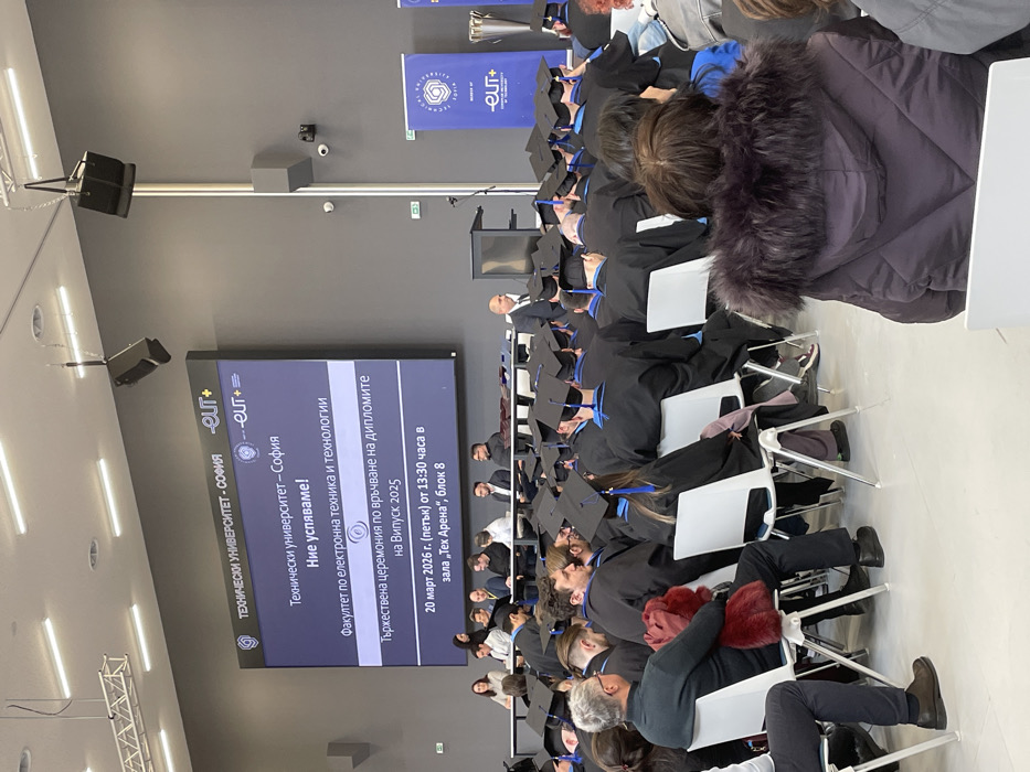 - "An indoor graduation ceremony is depicted within a large, modern hall at the Technical University of Sofia, Bulgaria, specifically in "Tech Arena", Block 8, as indicated by the prominent LED screen" by FM-orEo22, licensed under CC BY 4.0