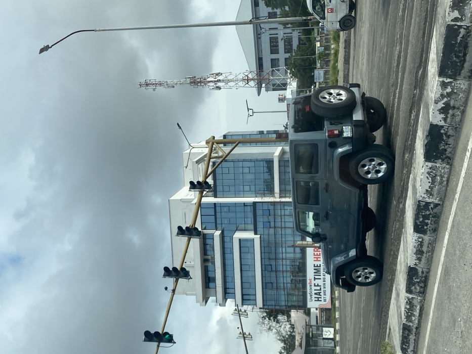 The image displays an urban intersection in Ilado, Nigeria, under an overcast sky