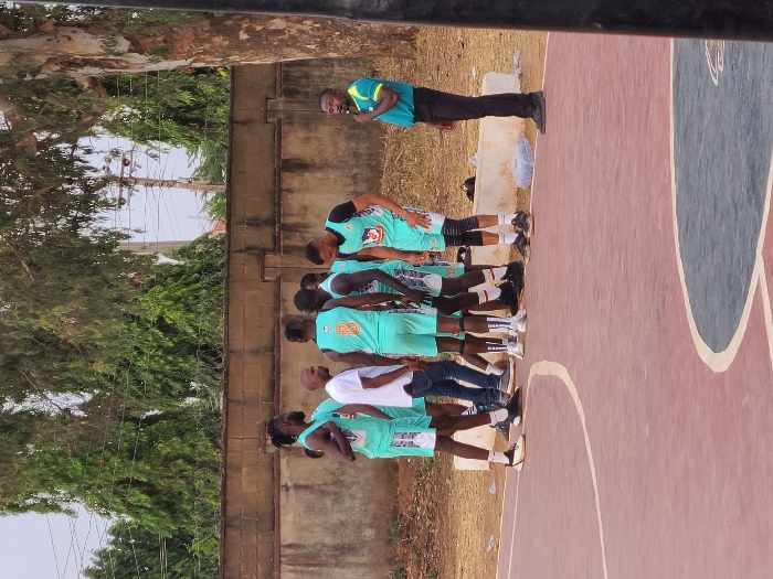 The image displays an outdoor basketball court located in Jos, Nigeria