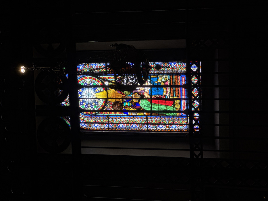 - "The scene depicts a vertical stained-glass window viewed from a dimly lit interior within Monistrol de Montserrat, Spain" by FM-5V1Jf1, licensed under CC BY 4.0