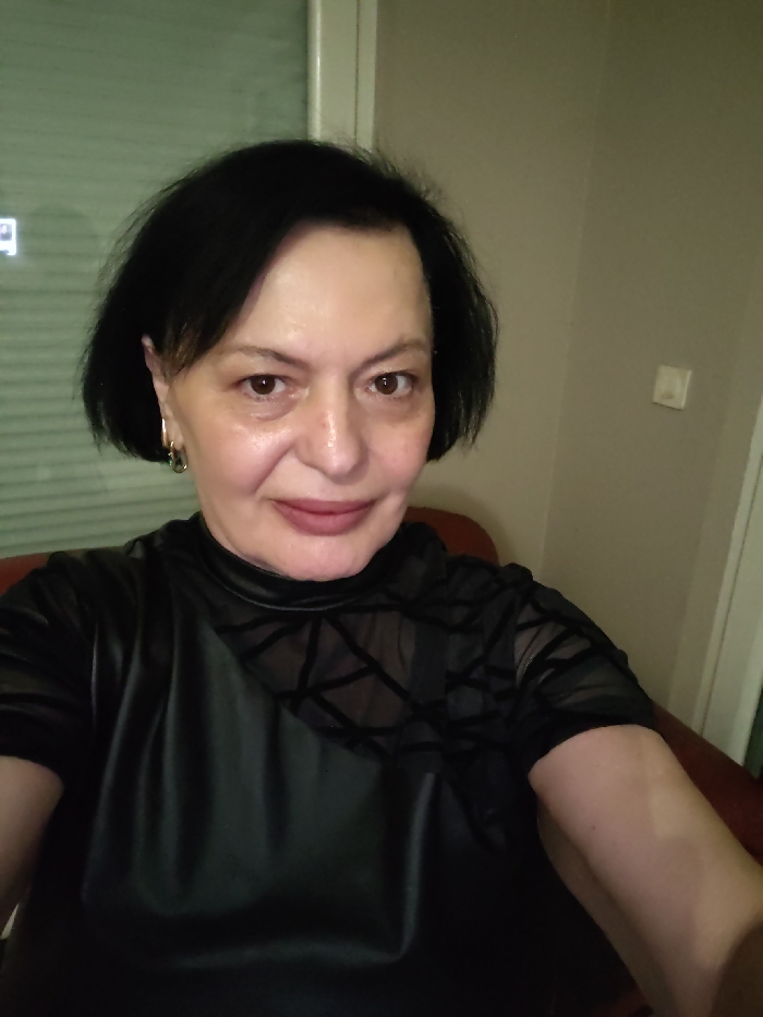 - "A middle-aged woman with dark, short hair and fair skin is centered in the frame" by FM-Odse83, licensed under CC BY 4.0