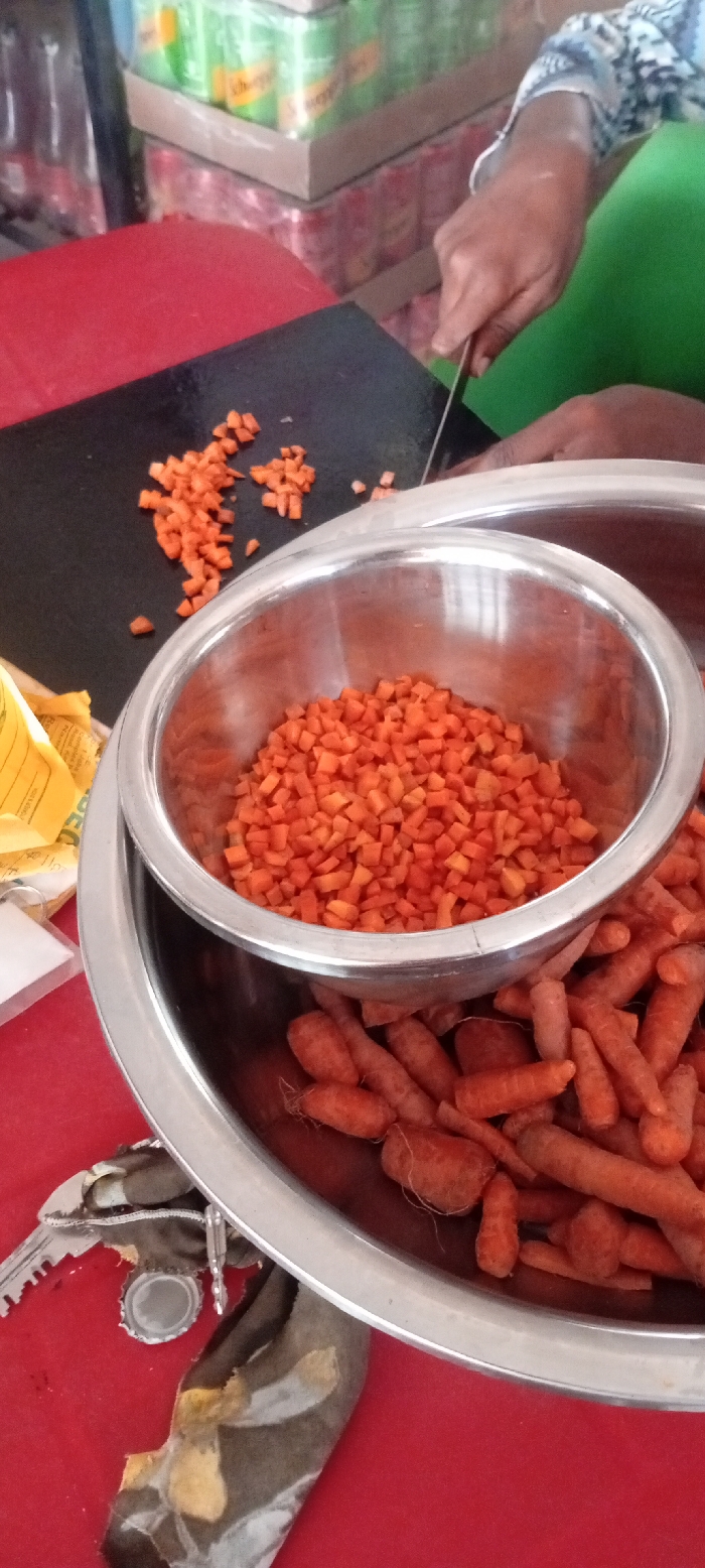- "In Aviation Quaters, Nigeria, an individual's hands are actively dicing carrots on a black cutting board positioned on a red surface" by FM-oATT32, licensed under CC BY 4.0