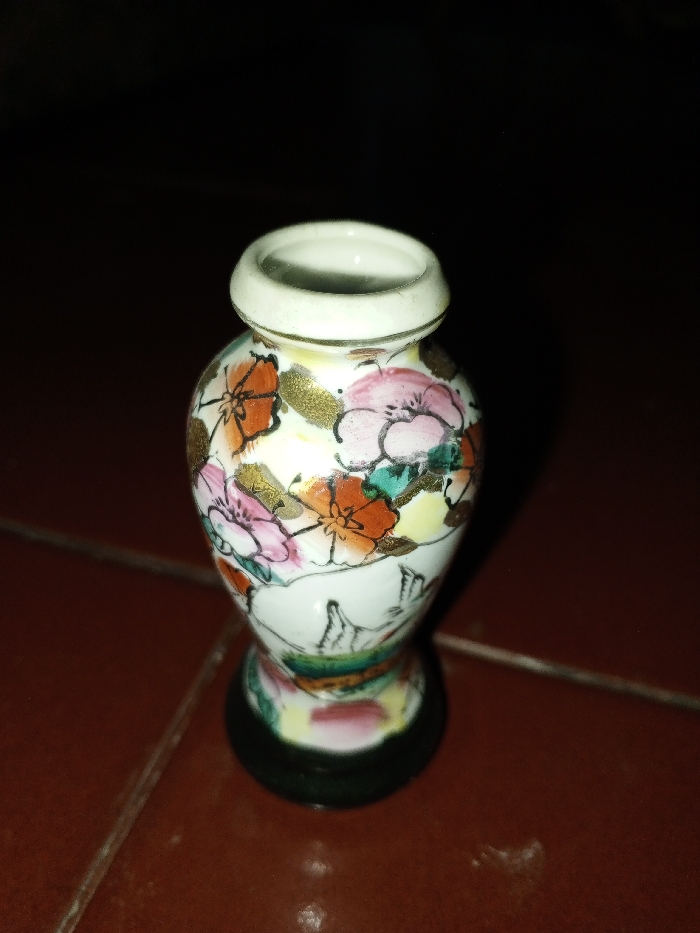 - "A miniature, white ceramic vase rests on a reddish-brown tiled surface" by FM-zVPRH2, licensed under CC BY 4.0